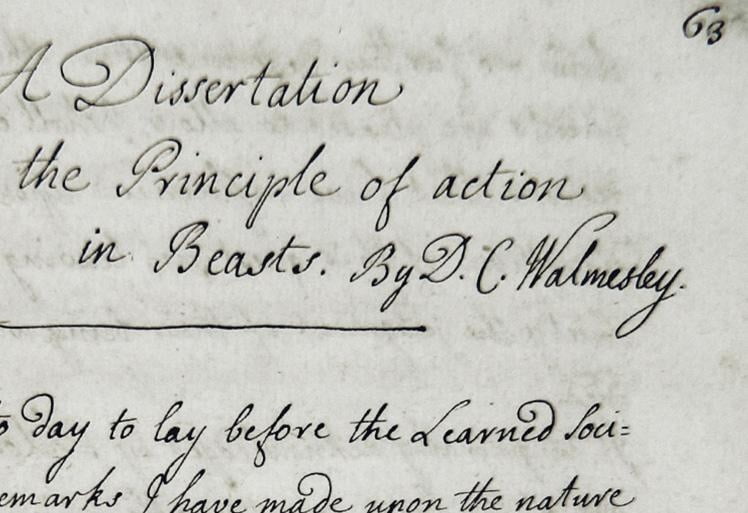 Charles Walmesley OSB, On action in beasts, 1751